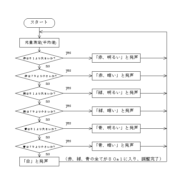 方法としては、基準の白色を検出部に当て、A/D変換器の入力電圧を